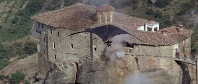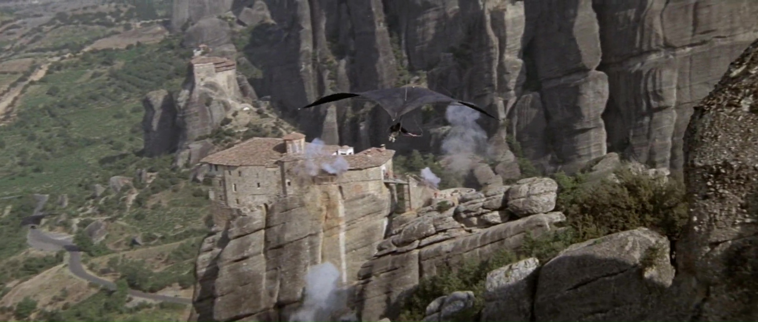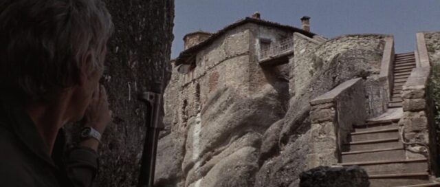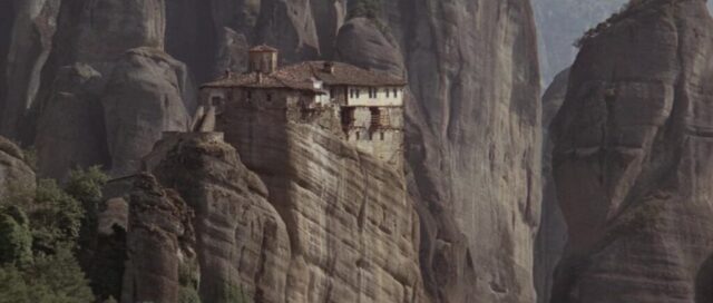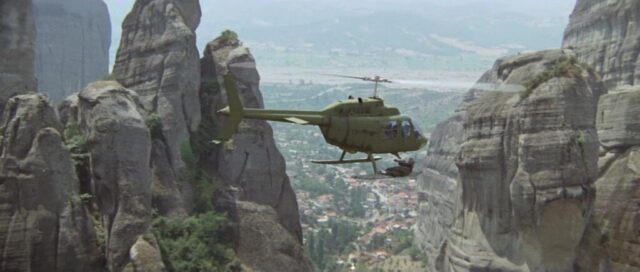 Sky Riders (1976) was shot entirely in Greece and is famous for using Meteora locations five years earlier than For Your Eyes Only. The spectacular rock formations served as the terrorist hideout. The production used the The Holy Monastery of Rousanou for several key scenes.