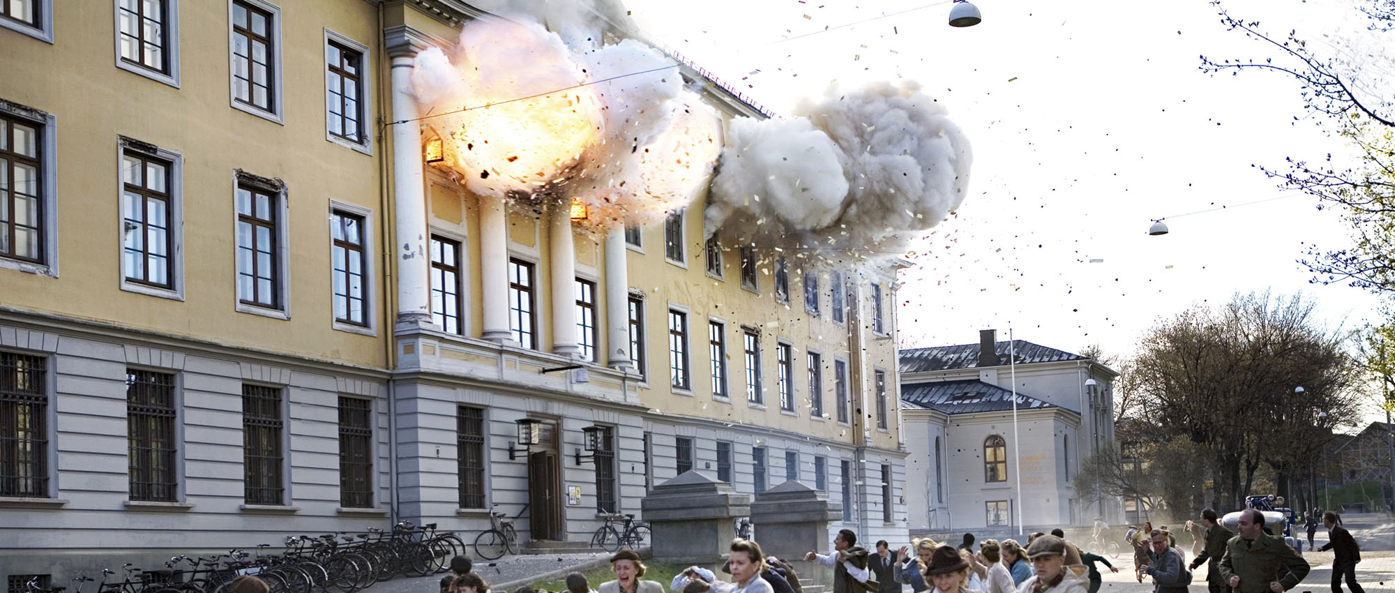 The 2008 Norwegian film Max Manus: Man of War, has scenes where the Ministry of Defense bulding gets blown up in a huge exploition.