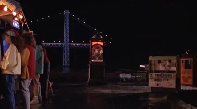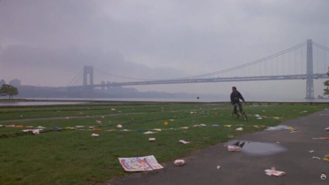 In Big (1988), Ross Dock Picnic Area is where the travelling fairground is set up and Josh first encounters the Zoltar machine. After being embarrassed on a ride because he is too small, Josh finds Zoltar and wishes to be big, setting the entire story in motion. When he returns the next day as an adult, the carnival has disappeared, leaving only the empty riverside location behind. The George Washington Bridge can be seen nearby, helping place the scene in the New Jersey side of the New York area.