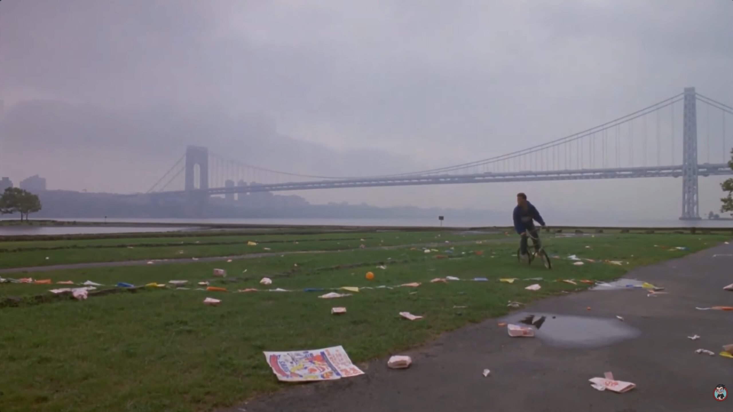 Ross Dock Picnic Area in Fort Lee, New Jersey, sits inside Palisades Interstate Park, directly below the cliffs of the New Jersey Palisades and close to the George Washington Bridge. The area has wide views across the Hudson River towards Manhattan, but it also has enough open space to work as a park, fairground or gathering place on screen. Its position under the Palisades gives it a distinctive look, with the river, bridge, cliffs and New York skyline all close by without placing the scene directly inside Manhattan.