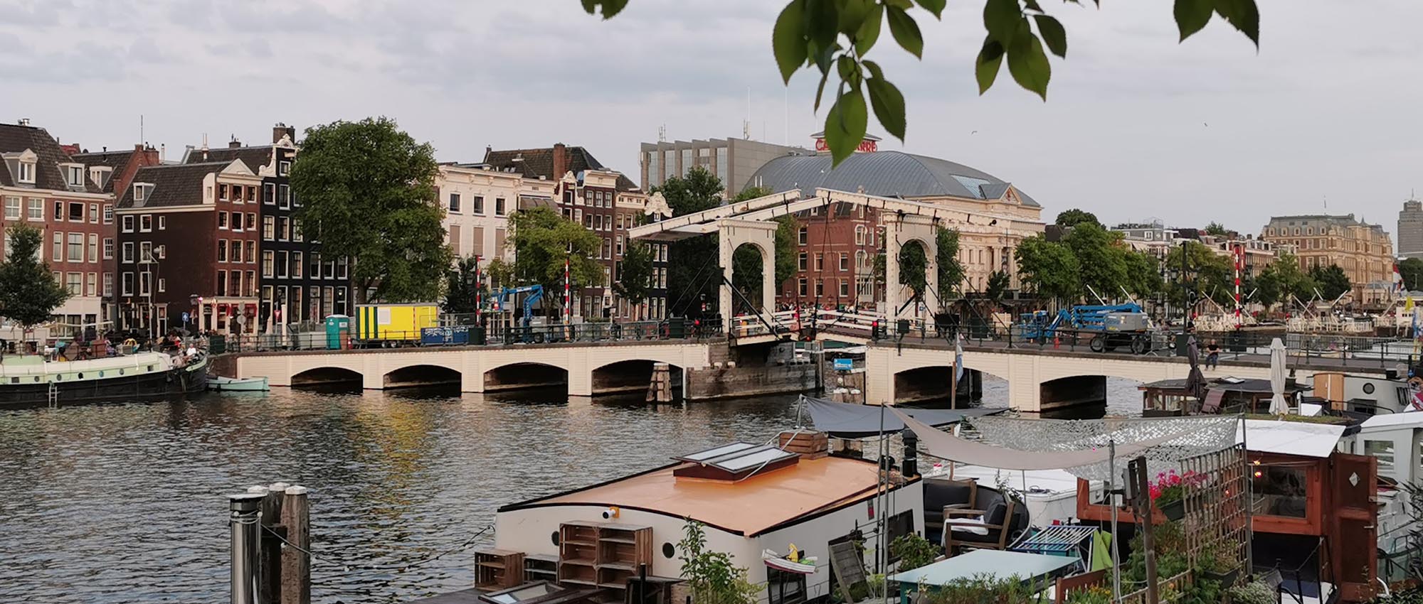 The Skinny Bridge, or Magere Brug as it is called in the Netherlands, is a bridge over the river Amstel in Amsterdam, Netherlands. It connects the banks of the river at Kerkstraat, between the Keizersgracht and Prinsengracht.
